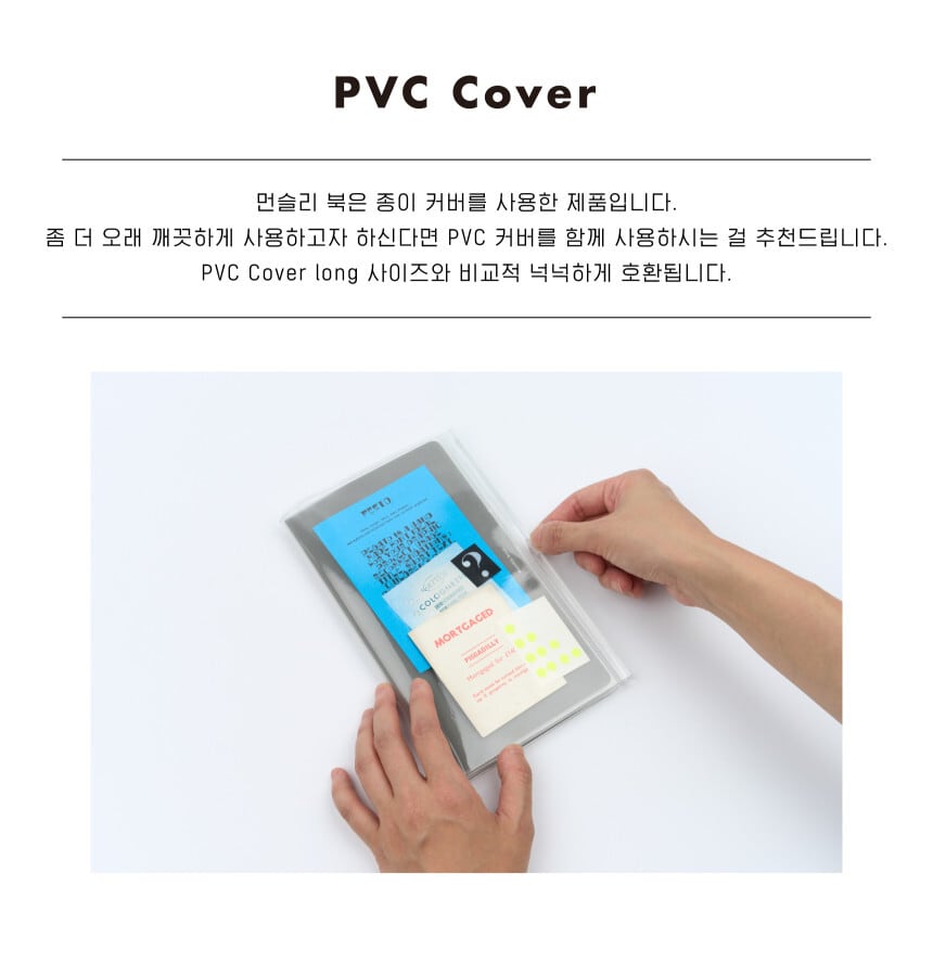専用PVCカバー ※別売り(PVC Cover long)(ジッパーポケット付き)は、ステッカー・メモなどの収納も可能で、手帳の“おうち”として活躍してくれます.