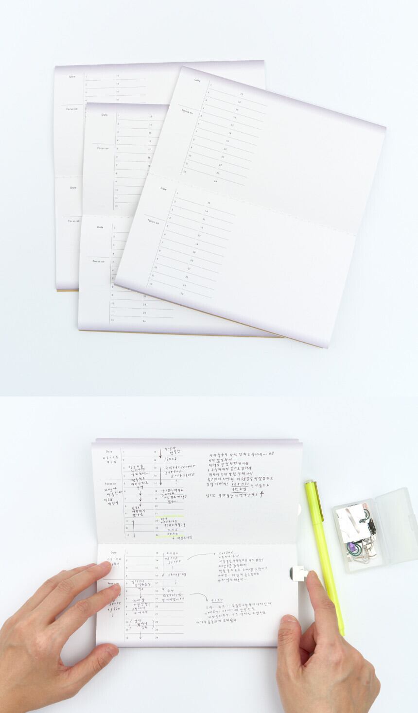 滑らかなページは、ペンや鉛筆の動きに寄り添い、アイデアや予定をスムーズに記録.