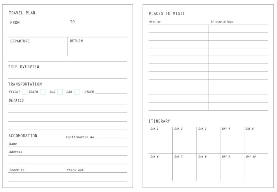 Travel Plan : 4ページ×20セット
