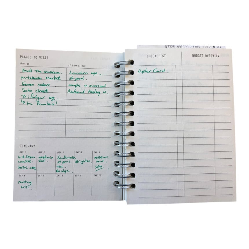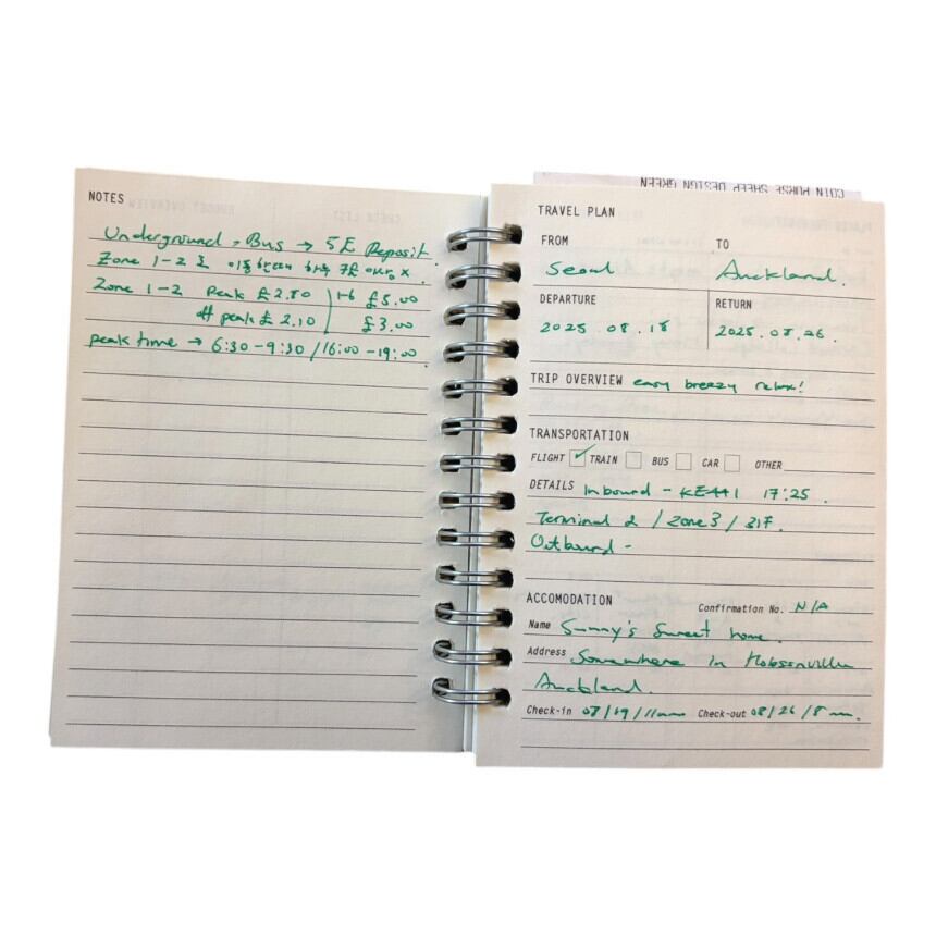 旅の計画から記録までをすっきりまとめられる、コンパクトなトラベルノートです。