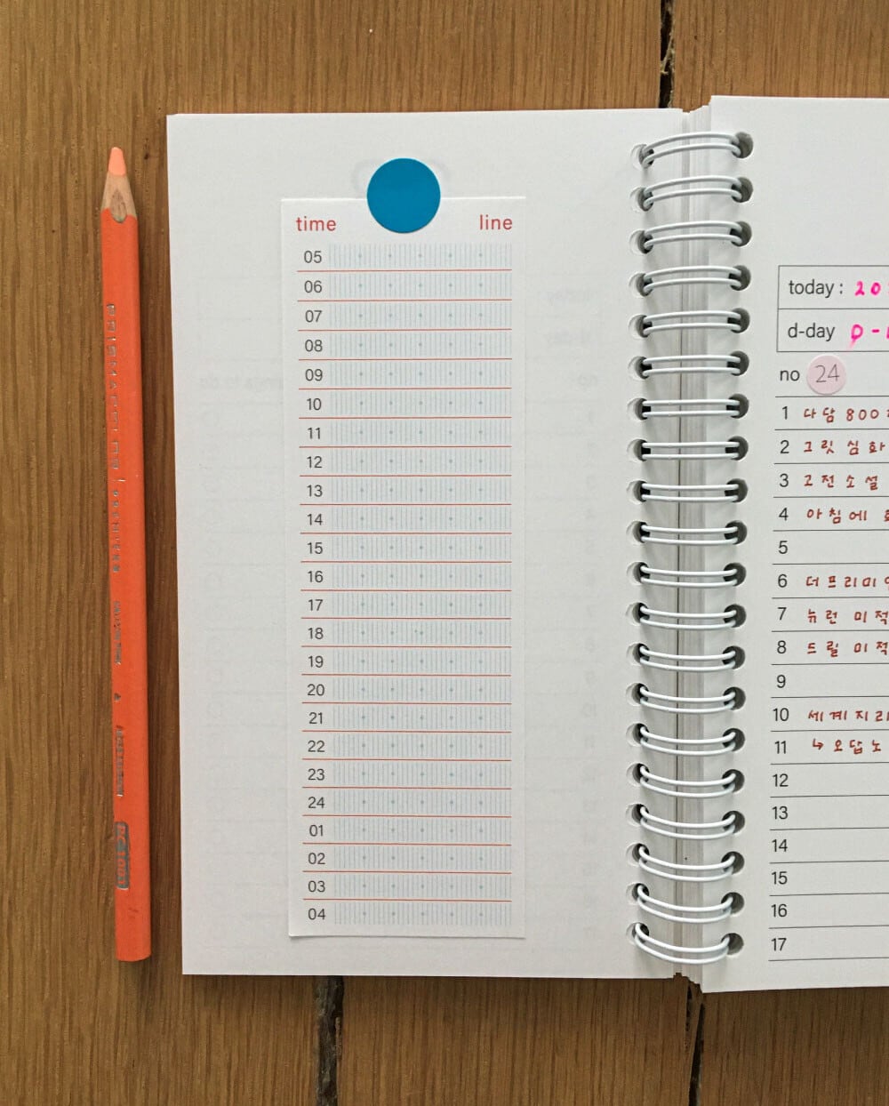 ページには小さなドットで時間が区切られたガイドラインがあり、