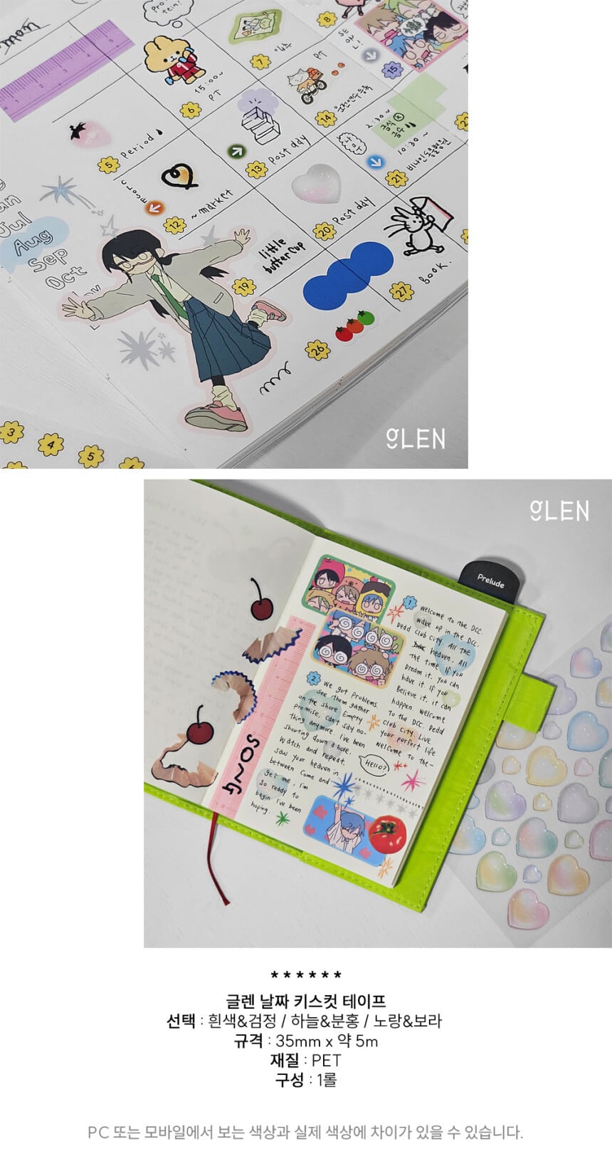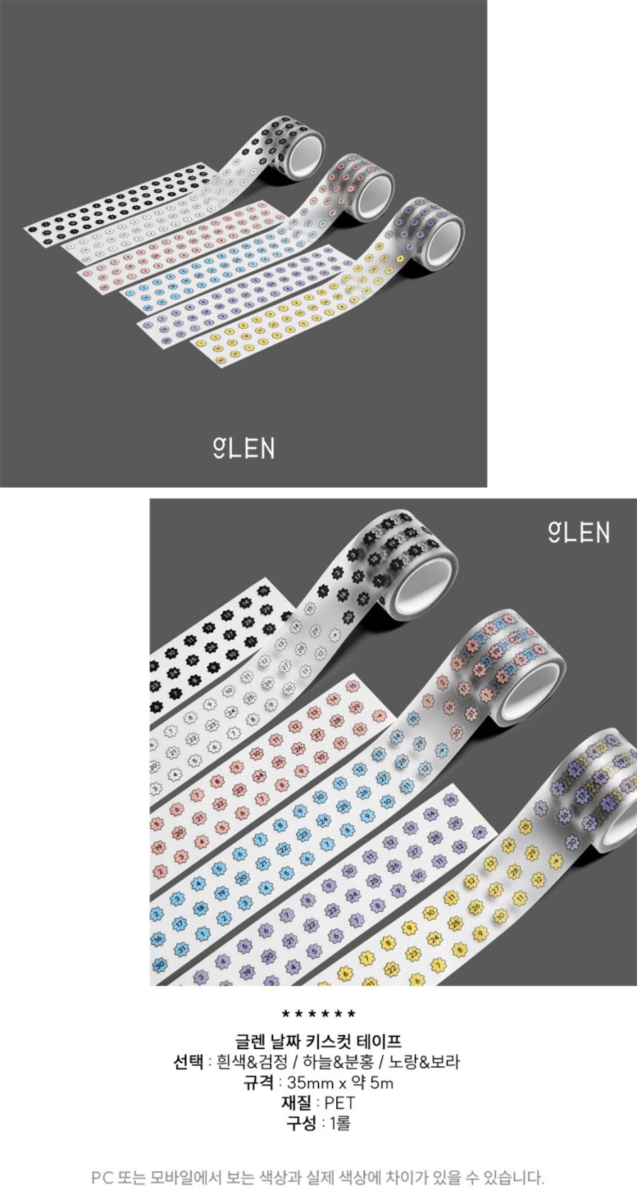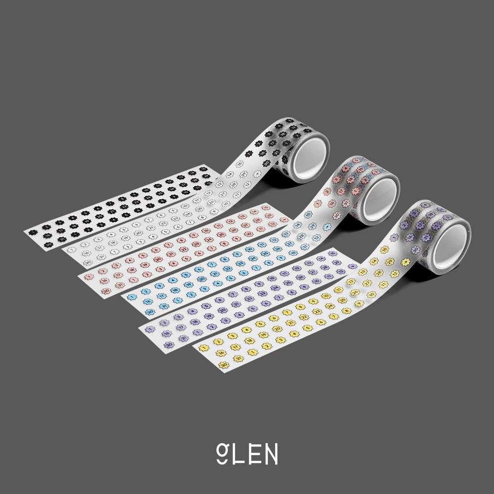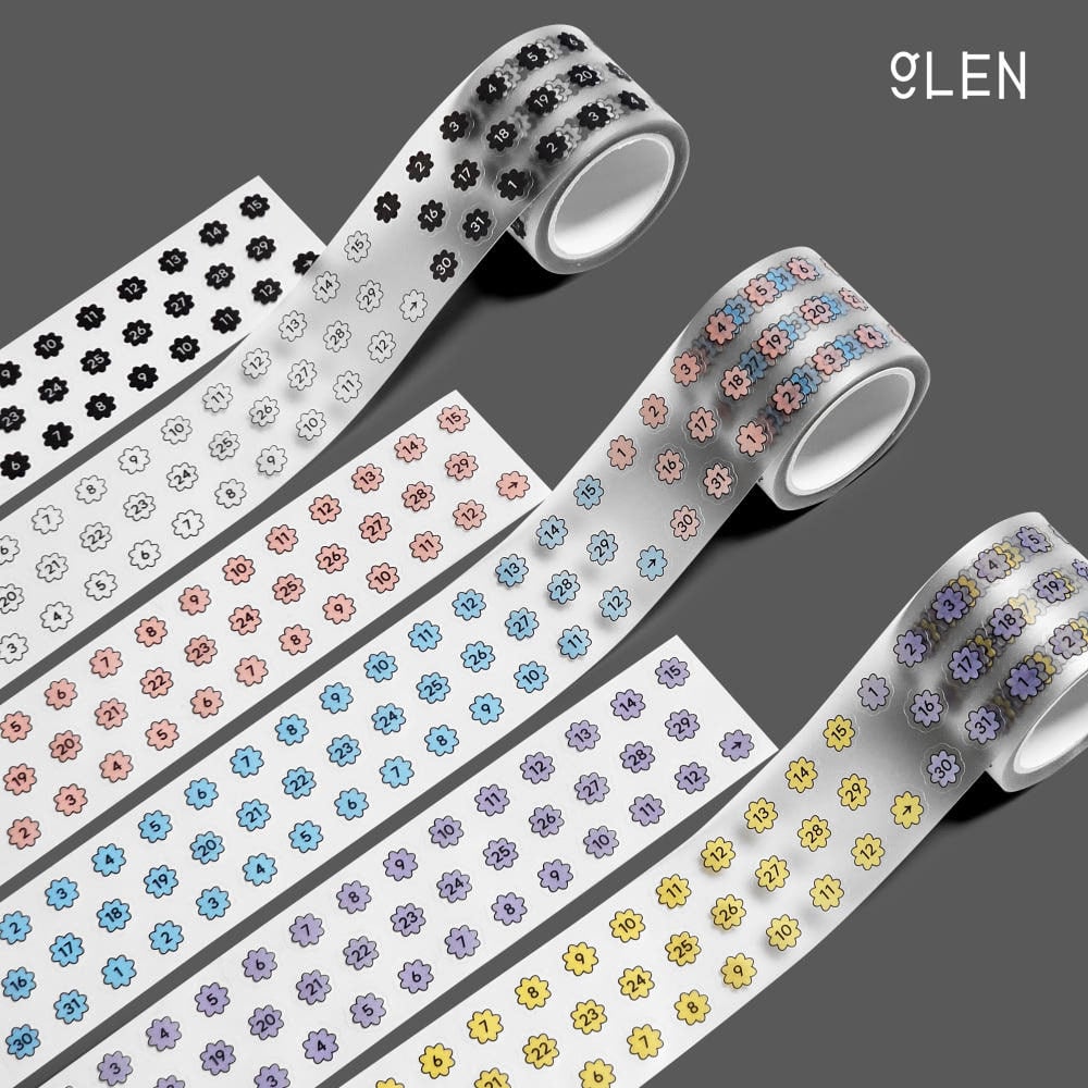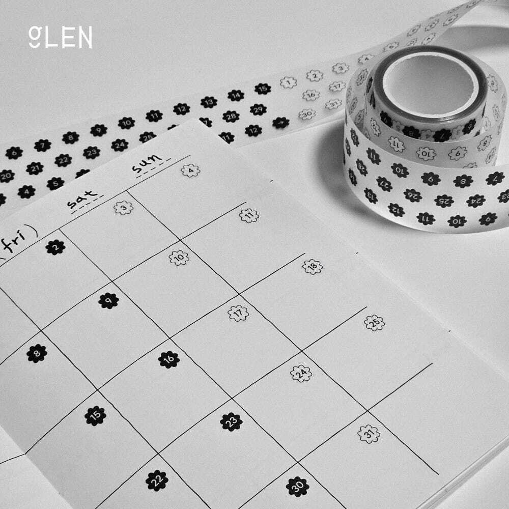 日付の数字を小さなフラワーモチーフに落とし込んだ、ロールタイプのキスカットテープ。