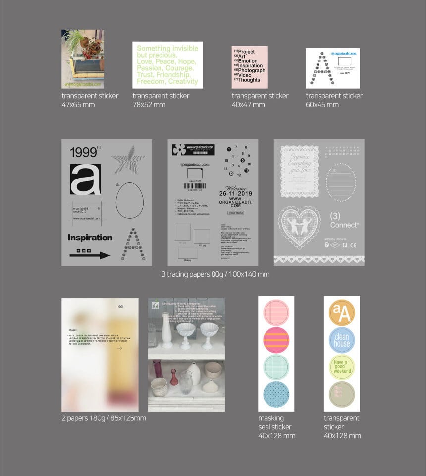 トレーシングペーパーやPET、和紙など異なる素材感を重ねることで、やさしい立体感を楽しめるパックです。