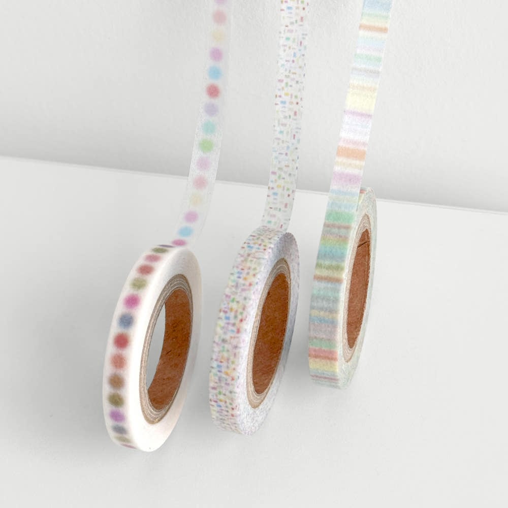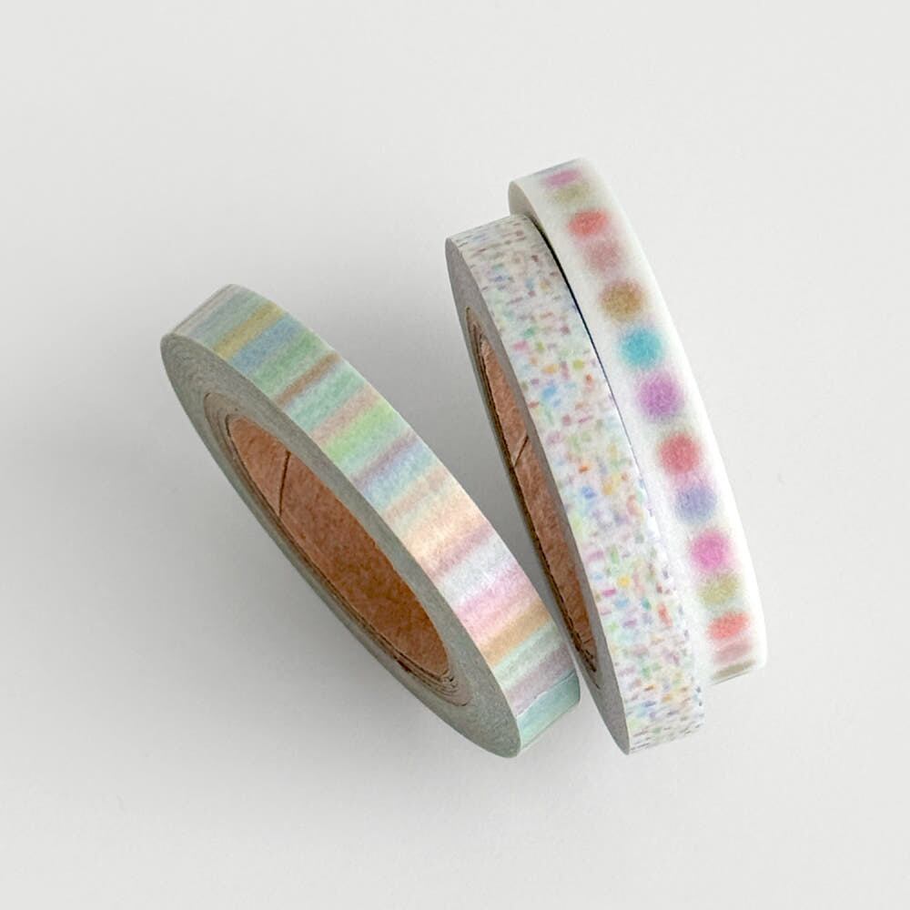 幅細めで使いやすい、3種類のデザインが楽しめるマスキングテープセット。