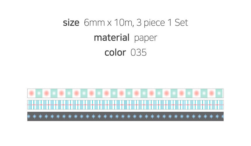 幅細めで使いやすい、3種類のデザインが楽しめるマスキングテープセット。
