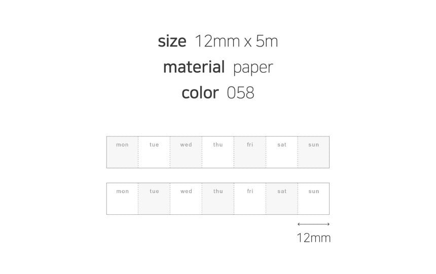 曜日が印刷された、デイリー管理に便利なマスキングテープ。