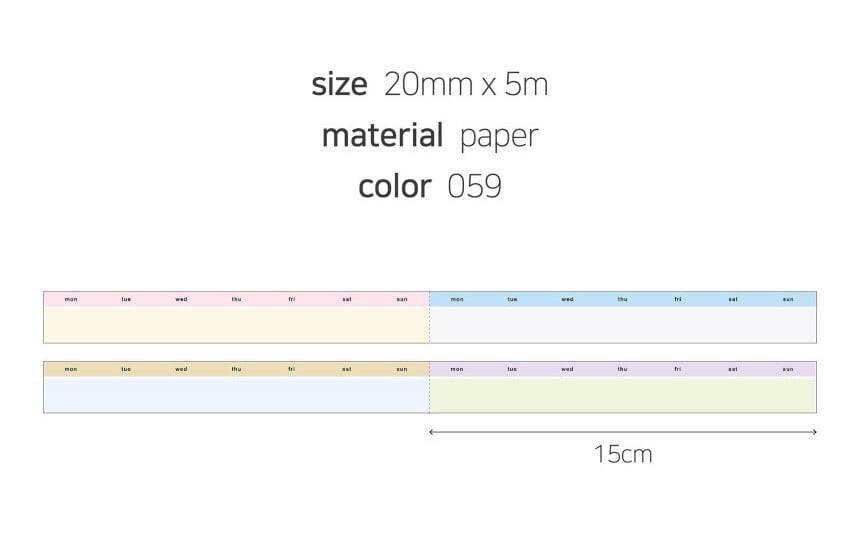週間スケジュールと日付の区切りをすっきりまとめられる、切り取り線付きマスキングテープ。