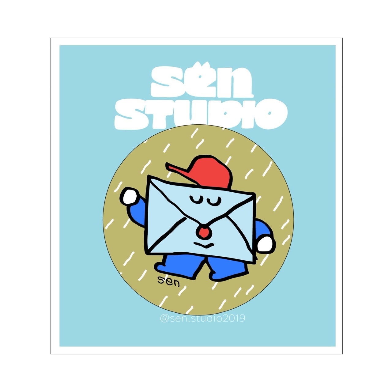ゆるいブルーのお手紙に、赤いキャップがアクセント。