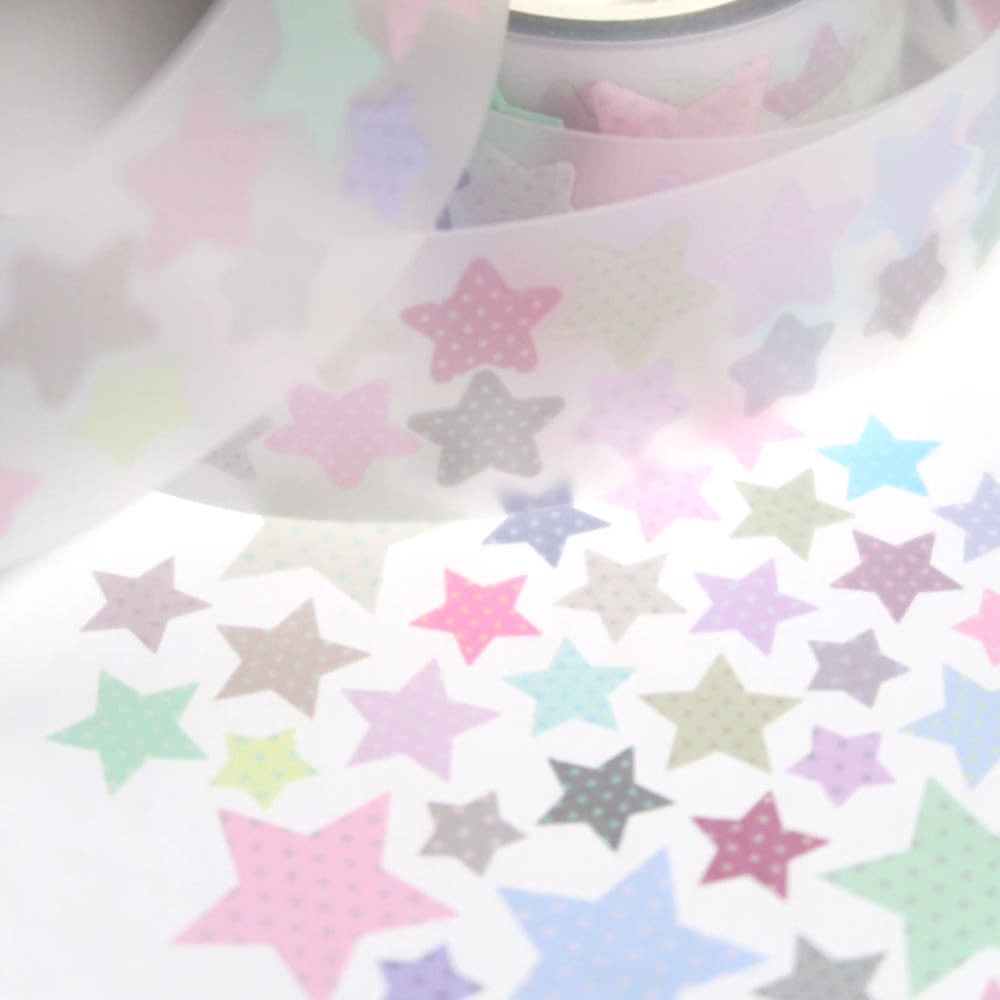小さなドット模様が施された星は、散りばめて貼るだけで、どんなページもふんわりと優しい雰囲気に。