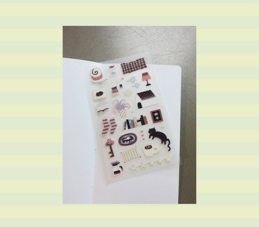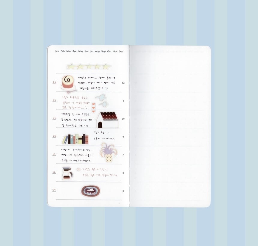 見ているだけで心がふんわりと解けていくような、穏やかなおうち時間をイメージしました。落ち着いたトーンの色彩は、手帳のページに馴染みやすく、そっと日常に寄り添ってくれます。忙しい毎日の合間に、あなたの手帳の中だけでも「甘くて優しい時間」を広げてみませんか?