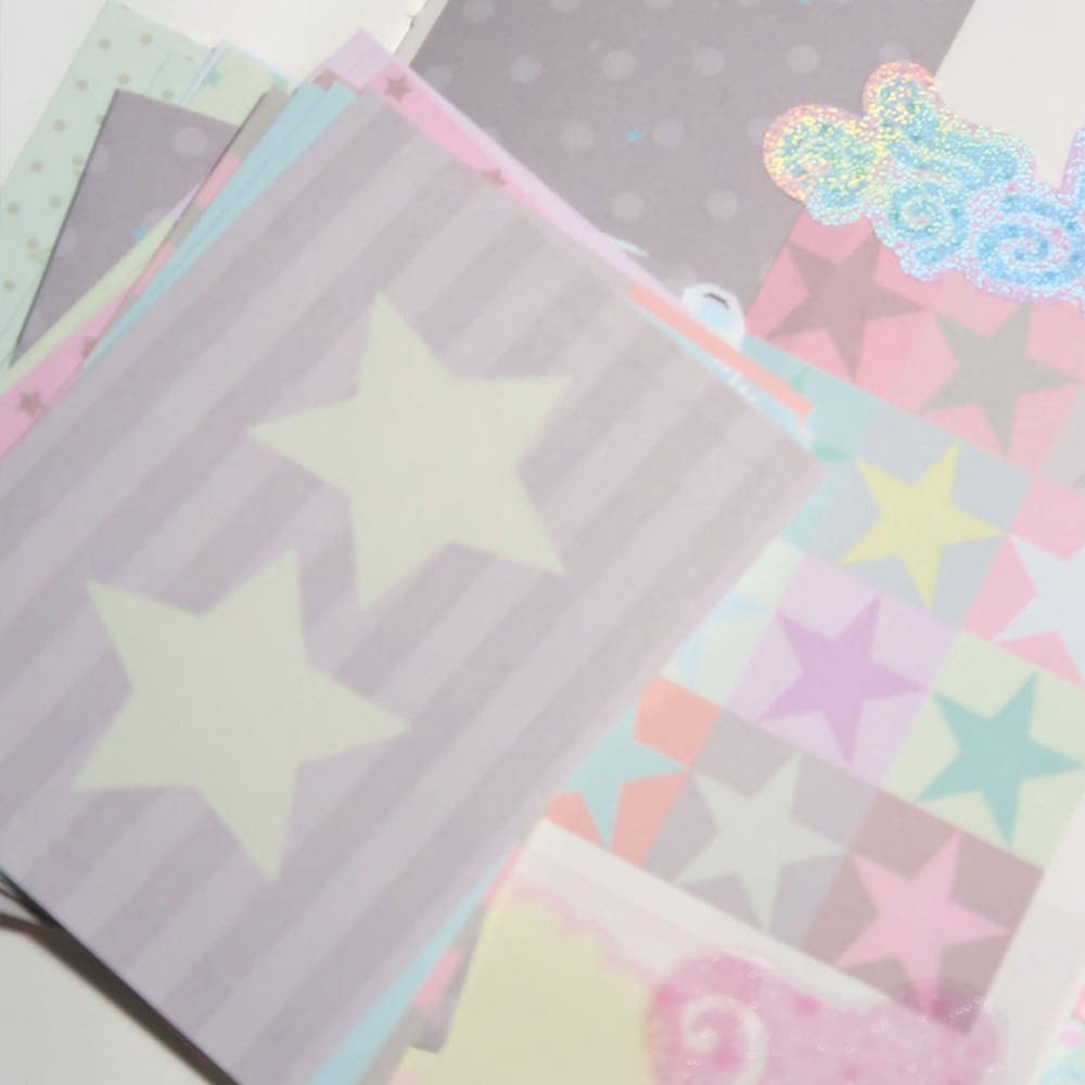 50mm×70mmの使いやすいカードサイズで、手帳デコレーションの背景やベース作りに重宝するステッカーセットです。