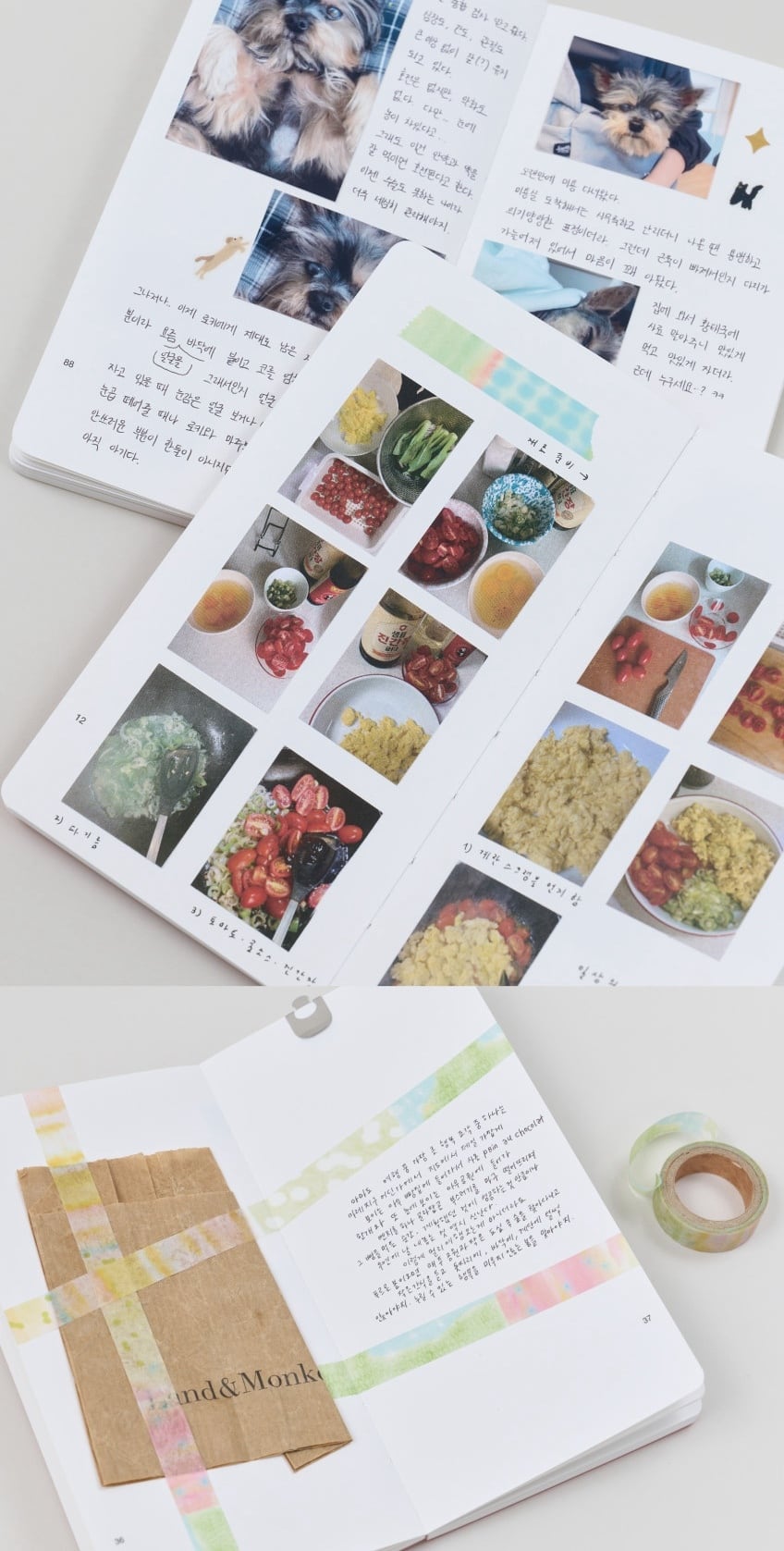 罫線もドットもない真っ白なページは、スケッチをしたり、写真を貼ってコラージュを楽しんだり、あるいは溢れる想いを書き殴ったり。