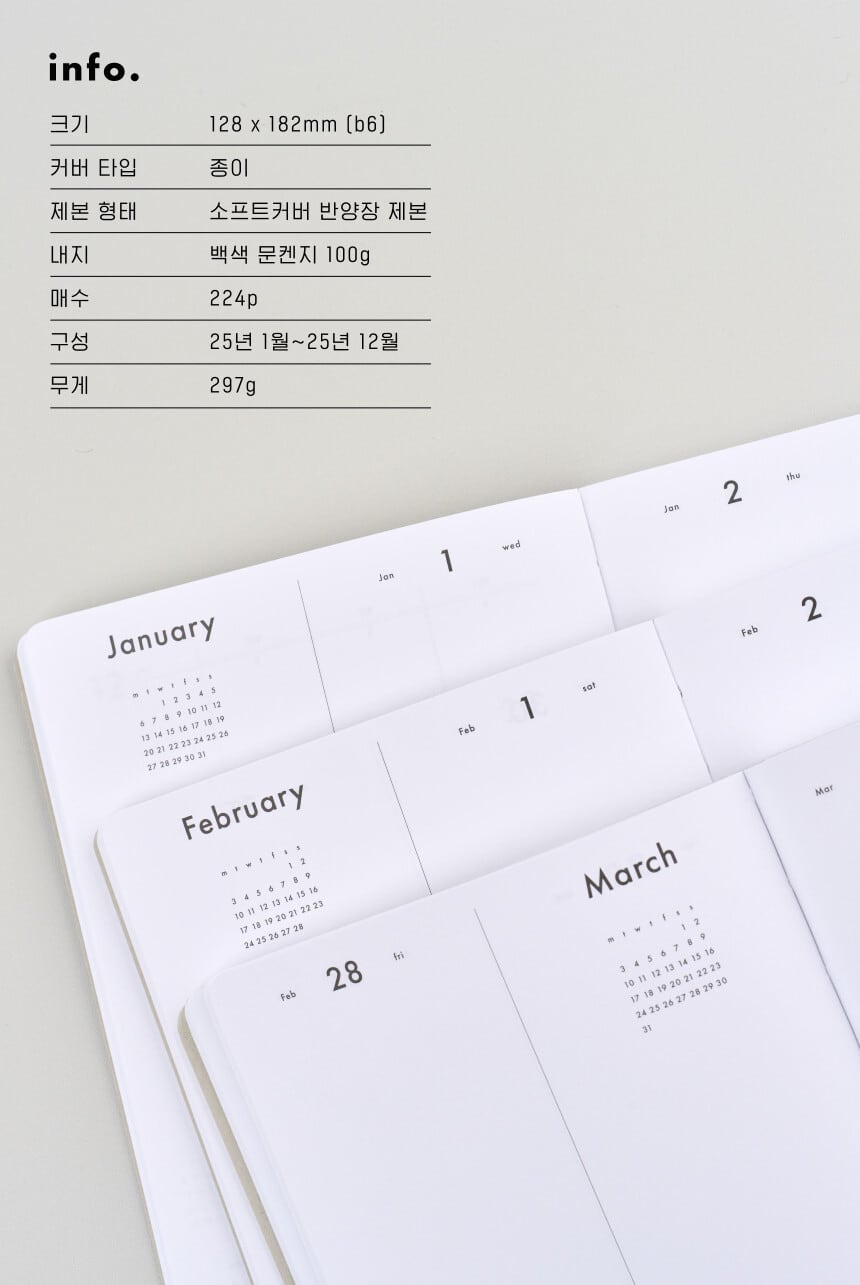 2026 daily diary は日付以外のサイズ、レイアウト形式、配置などは2025 daily diaryと同様ですのでご了承ください。