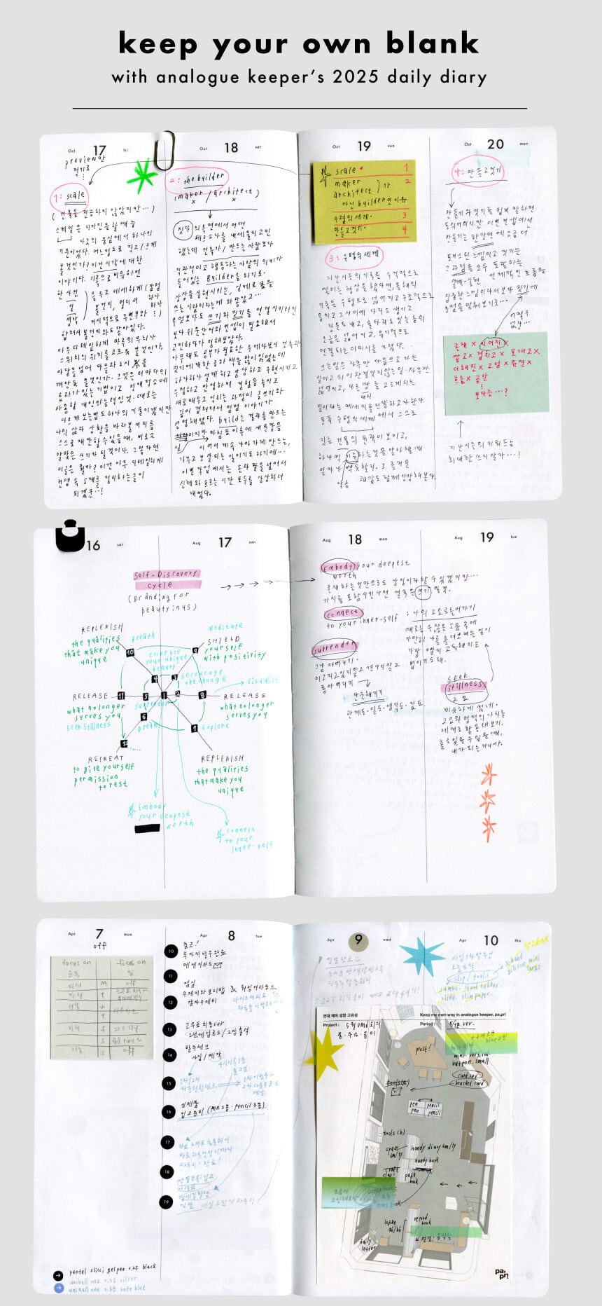 daily diary は日々の想いやアイデアをたっぷり記録できるダイアリーです.